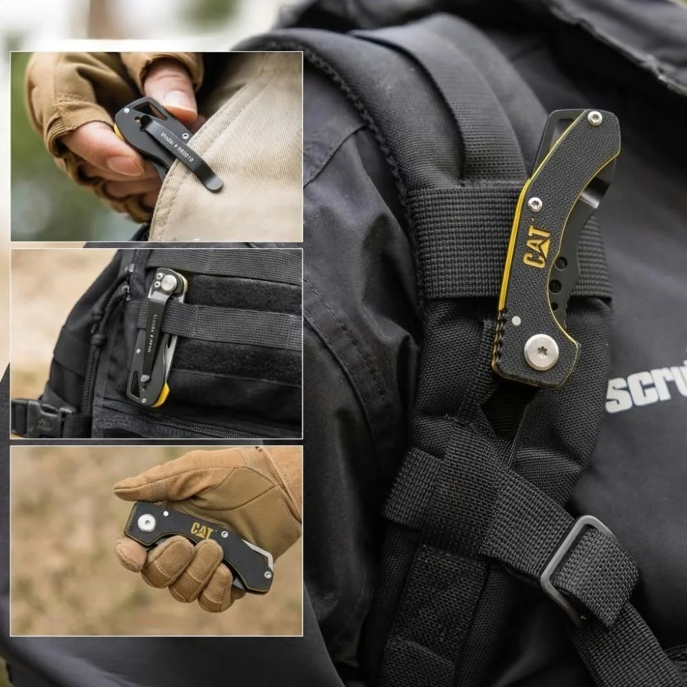 • CAT DA980010 Kemer Askı Kancalı Katlanabilir 12CM Paslanmaz Çelik Kamp Çakısı