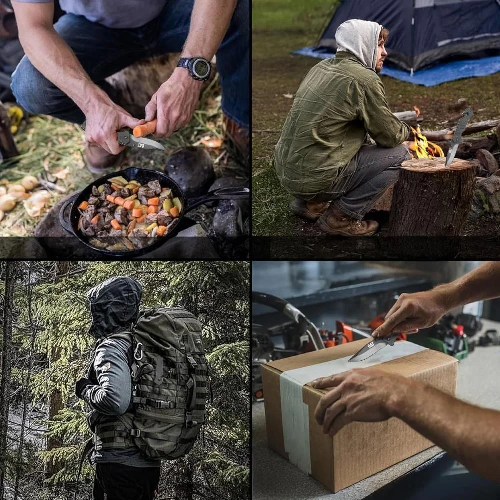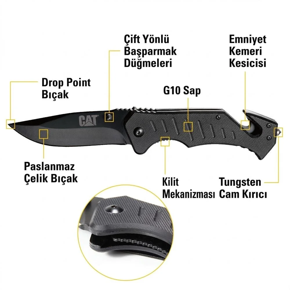 • CAT DA980012 3 IN 1 Çok Fonksiyonlu Katlanabilir 20CM Paslanmaz Çelik Siyah Kamp Çakısı
