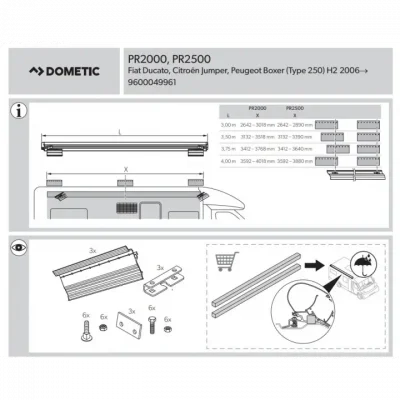 DOMETIC Siyah Duc-Jump-Boxer-Transit 3 Parçalı Montaj Kiti PR2000-2500