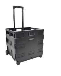 Katlanır tekerlekli kamp kasası siyah rengiyle hem şık bir görünüm elde ederken hem de kamp ekipmanlarınızı güvenli bir şekilde taşıyabilirsiniz.