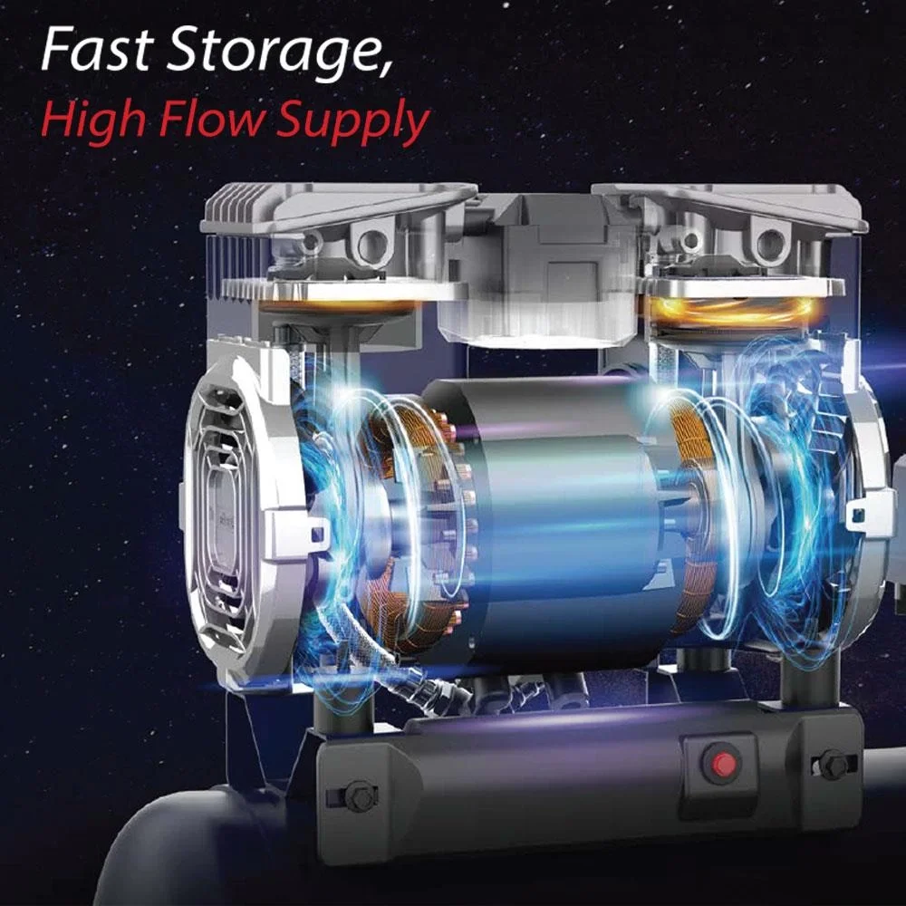 • Özel geliştirilmiş çift motor yapısı ve çift piston yapısı sayesinde rakiplerine kıyasla dört farklı piston başından hava üretimi doğrudan hava tankına basınçlı bir şekilde iletilir. Bu sayede hızlı hava üretimi sağlanır.