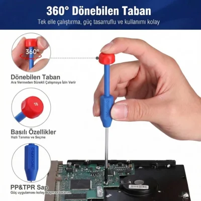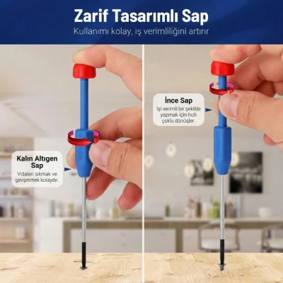 Buna ek olarak manyetik uçlu tornavida modelleri, vidanın uca tutunmasını sağlayarak dar alanlarda çalışmayı kolaylaştırır ve vida düşürme riskini minimuma indirir. Bu özellik, özellikle hassas elektronik montaj işlerinde büyük bir pratiklik sunar.