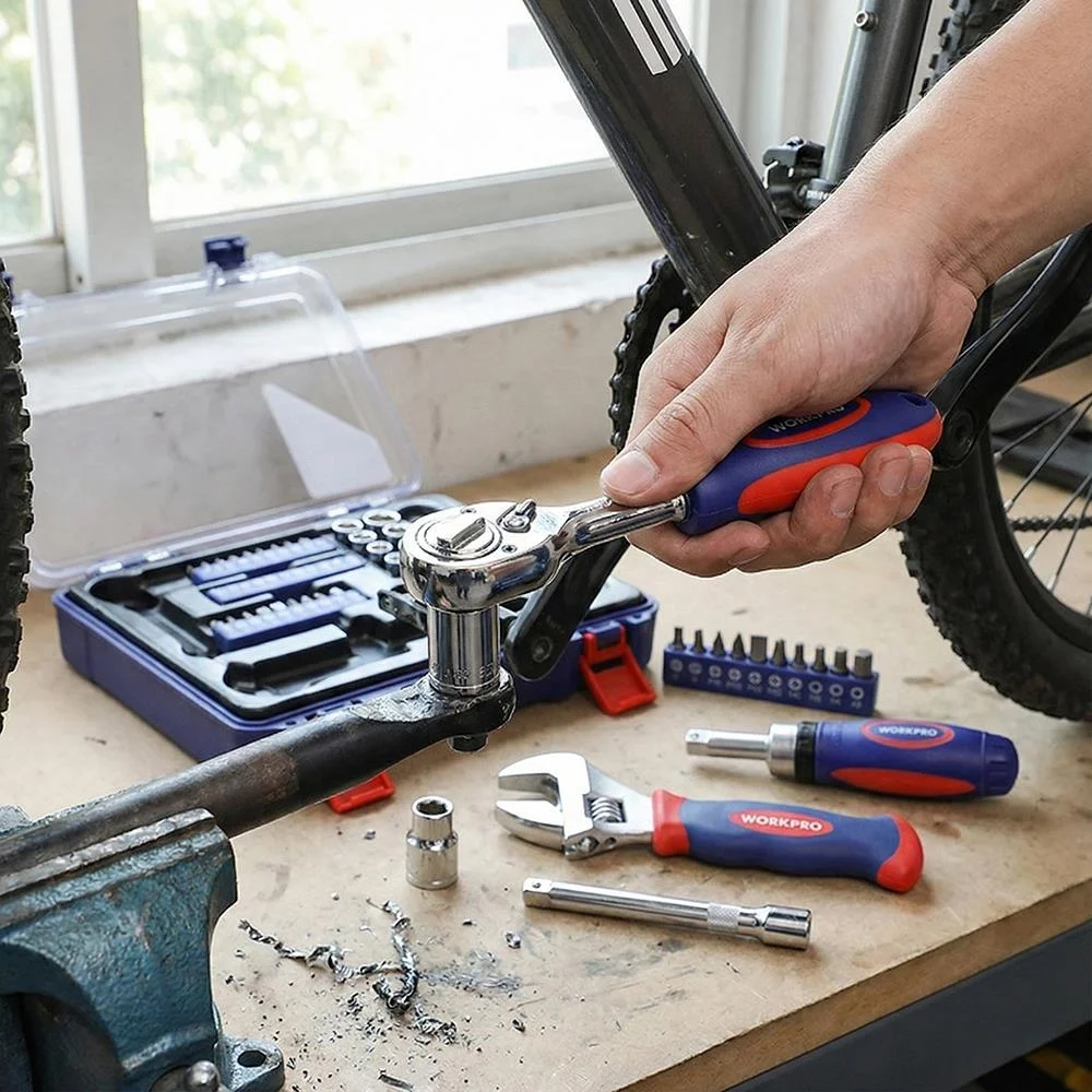 • WORKPRO WP200555 1/4'’ 1/2’’ 38 Parça Cr-V Lokma ve Topaç Cırcır Araç Tamir Seti