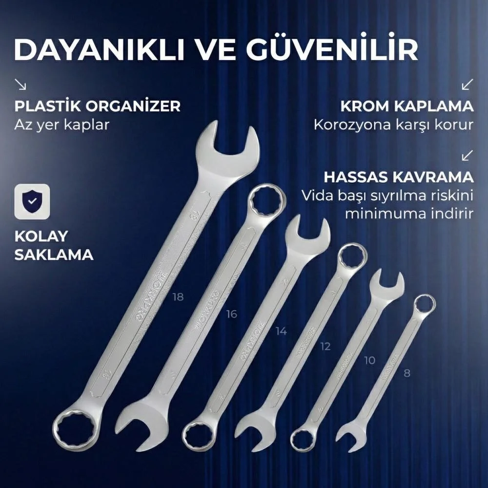 • 8, 10, 12, 14, 16, 18mm Kombine Anahtar Takımı