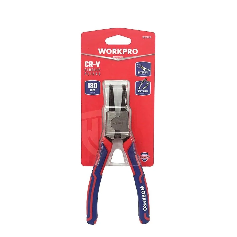 • WORKPRO WP231151 180MM CR-V Eğri Uçlu Yaylı Profesyonel Dış Segman Pensesi